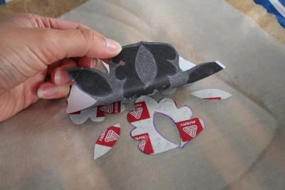 5. Place all your cut out shapes FACE UP on your remaining design, matching them up. Use a tiny dab of glue to hold them in place temporarily. We do this to transfer the design neatly to your fabric, otherwise trying to position all the little pieces and then iron them on, leads to disaster!