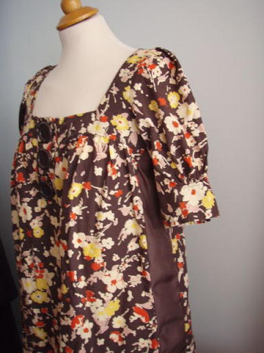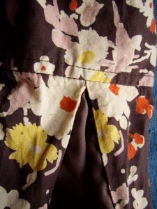 Despite being smock-shaped, this blouse was too narrow across the upper chest. I decided to put a panel in all the way up from the hem to the cuffs. Typically, in my studio of a million miles of fabric, I hadn’t got any brown cotton. Nope, not a bit. I had to use silk crepe de chine, which was NOT an ideal choice. But it does mean I have silky underarm stripes now.