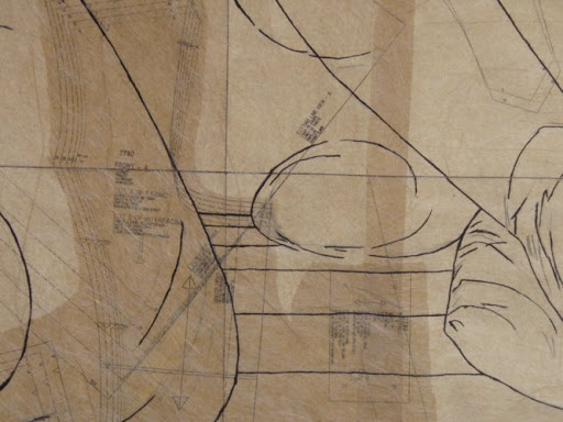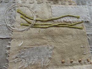 Then we found Heather Wharam, Gizella’s studio-mate, exhibiting elsewhere. I loved her work, using stitch and print onto layers of dress patterns. The knitters I was with didn’t recognise the pattern tissue, whereas I know the stuff very well.