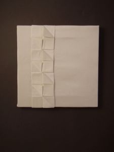 The panels are a set of 3, each 30x30cm made from the Thai silk and organza left over from Helen‘s wedding dress, commissioned as a wedding momento (for her husband!).