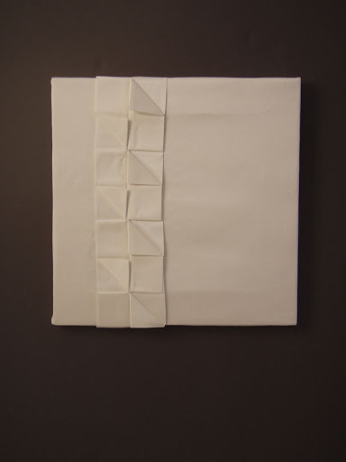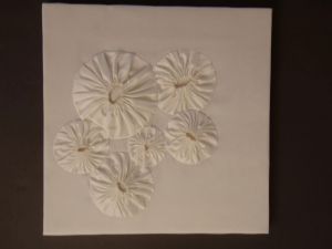 The panels are a set of 3, each 30x30cm made from the Thai silk and organza left over from Helen‘s wedding dress, commissioned as a wedding momento (for her husband!).