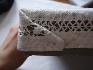 But aha! A vintage tray cloth thing with wonderful cut work and drawn thread work!
