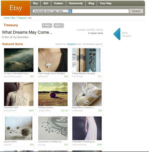 I had a piece listed on an Etsy Treasury page today (one of the book kits – this one the Falling Blossom decoration). Its always lovely to be featured in one of these and this one is in particularly good company. I LOVE the Anenome blouse. Luckily its teeny weeny and wont fit me, so I am not too tempted.