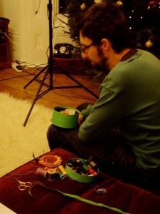 Way back before Christmas, I trotted down to London with needles, thread and some trepidation to go and meet the man off the telly and teach him some sewing basics. Teaching people (particularly men) to sew on buttons is not in the normal run of my working life. Especially when they have never picked up a needle in their lives! But it was a fun afternoon, without a doubt. Firstly I arrived early. No-one in at Watson towers. Flat phone. Hmmmm. Then the photographer and his assistant arrived, so at least I was not alone on the doorstep and we were at the right place. All was not lost, some timing-communication error had occurred and we merely had to hang around a bit. Contrary to most peoples’ expectation of London and unfriendly Londoners, the Watsons’ downstairs neighbour rescued us from the doorstep and invited us into her home for tea and biscuits!