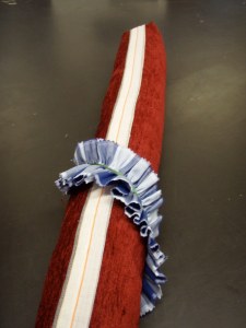 It seems I am almost powerless to resist the urge to sew dragon scales into everything. Or to sew Suffolk Puffs onto everything. Last weekend I ran a workshop making draught excluders so had to come up with some samples. Inevitably, both of those two favourite techniques came into play, and along with some ruffles, we had a lot of fun.