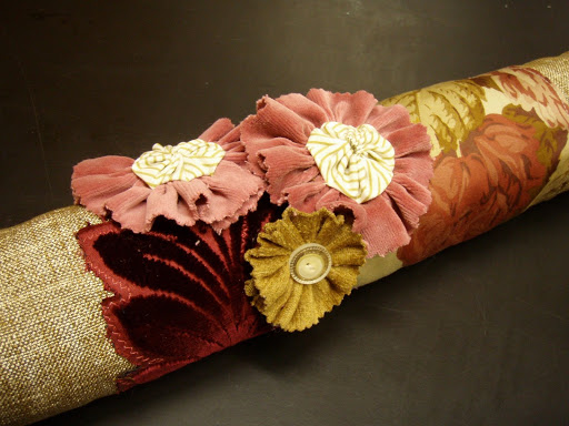 Lovely rosettes, velvet and suffolk puffs.