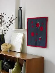 The red & white colourway is one of my all-time favourites so I thought I’d use it again, but in reverse. The gorgeous wool fabric was from Clothkits (although it was an oddment) and the stuffed shibori (bobbles) are made from organic cotton voile. The binding is organic cotton sateen sheeting.
