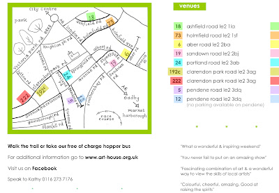 It is only a couple of weeks until the fabulous, little known, local Leicester treasure. Art House is an artist-run event where homeowners fill their houses with work by other local artists and makers and let people wander around and buy lovely things. It is truly wonderful. Like the bigger artist open house festivals in Brighton & Wirksworth, part of the fun is nosing in lovely houses. I will be exhibiting at 6 Aber Rd f just by Francis St where there are great shops & cafes – another little-known Leicester treasure. Even if you are from out of town, it is worth coming over for a day and exploring. The trail is in the very nice Clarendon Park / Stoneygate area of the city which is full of charming streets. There are more shops and cafes on Queen’s Road too.