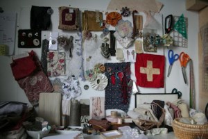 Studio; Inspiration board and on the sewing table
