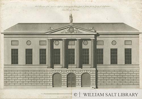Background print is an image of Shire Hall, image by kind consent of the trustees of the William Salt Library