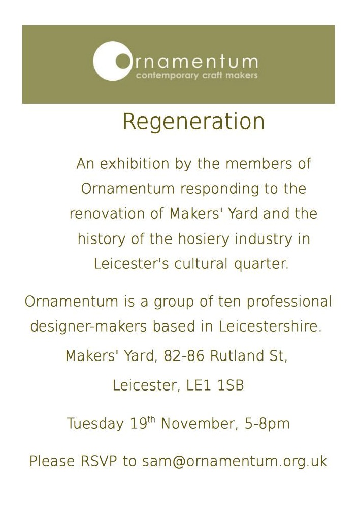 Exhibition Launch! Please come along to see the work of Ornamentum 10 contemporary craft makers in my studio building including my new installation in the nooks and crannies of the building.