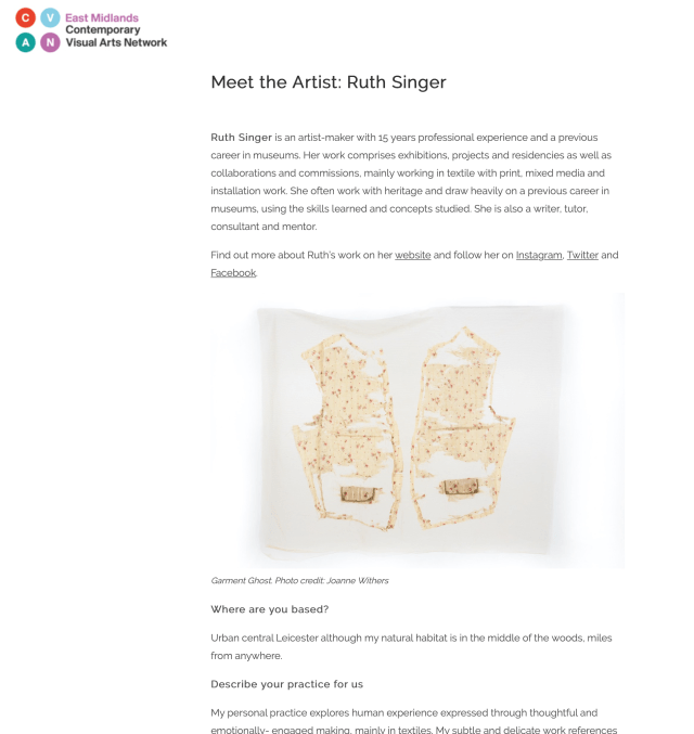 There’s an interview with me (done at the end of April) up on the CVAN East Midlands website. I’ll be taking over CVAN EM Instagram from 25th May too, sharing my thoughts on what it is to be an artist in 2020.