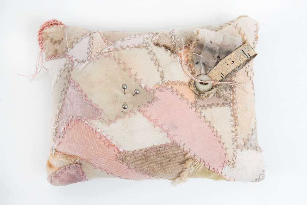 Do you have a collection of tiny, precious fabric scraps just waiting to find the right project? I created this technique to use up some of the very tiniest pieces of hand-dyed or antique fabrics. It is inspired by Victorian crazy patchwork but it’s much less busy. I use this technique to create fabric from scraps and use in small projects or as backgrounds to other stitch work.