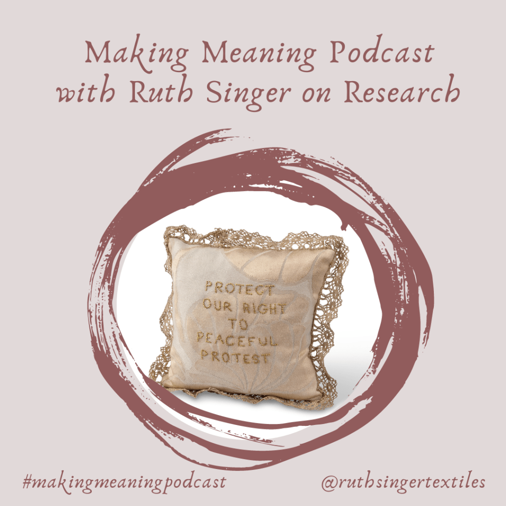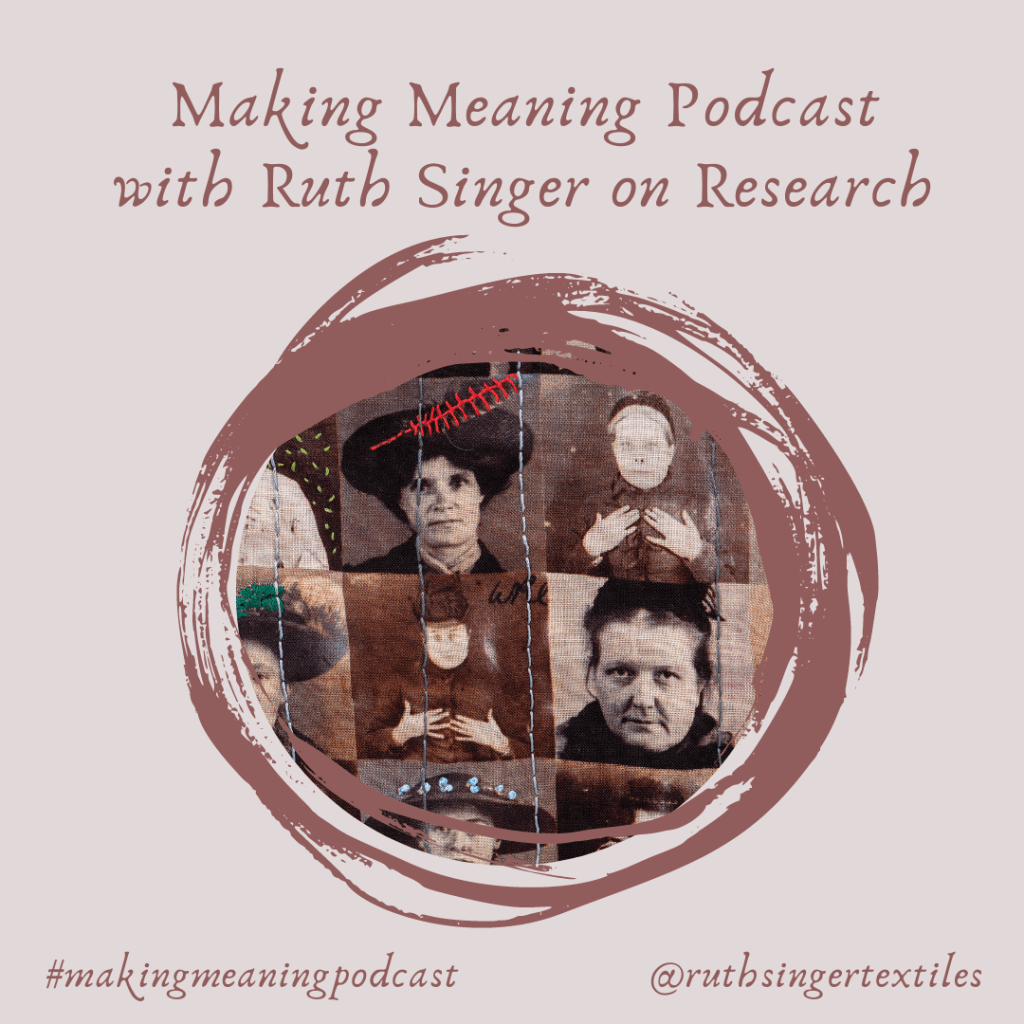 Research and stories are fundamental to my work. Everything I make has some kind of message or meaning which I want to express through making artwork. I talk about research a lot, both in the podcast and in my Maker Membership but I know that it isn’t always clear what I mean by research and narrative textiles. The podcast episode focusses on what I understand by research, what I do and what it means to me. Building more research (of whatever kind) into your making is one of the cornerstones of my Maker Membership and it’s something I love to explore with other creative people. There’s a lot more about research in creative practice to come in my Making Meaning Live Gathering – coming up next week if you are reading this when it comes out – or in later episodes of the podcast if you are catching up later!