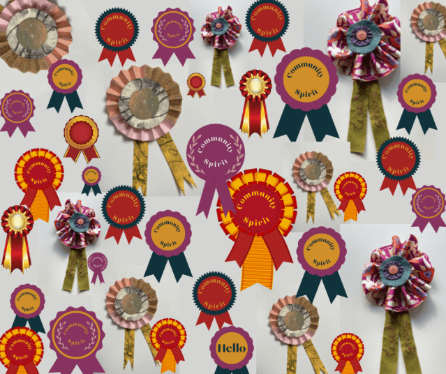 One of the inspirations was Alinah Azadeh’s Medals for Everyday Courage, shared by Craftspace. I loved the idea of medals or tokens to celebrate the work volunteers had done. But I didn’t want to copy this idea for my own project, I needed my own concept. We bounced around a lot of ideas and eventually rosettes came out top. It worked perfectly – could be made in textile or paper, there’s space for words and images and they would make great mementoes of volunteering for makers to give as gifts or to keep for themselves.