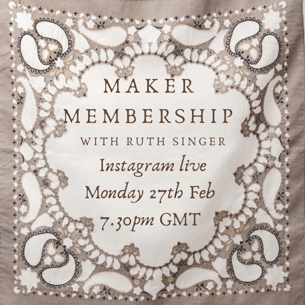 I truly believe that connection and community are vital to creativity. It’s hard to be making work on your own without conversations, feedback and inspiration from others. I created Maker Membership, my online community, during the pandemic to bring makers together to share, talk and be inspired. One of the problems of running an online membership is that it’s hard for potential members to know what it’s like without joining first. I’ve been working out ways to share a bit more about the membership so that I can welcome more new members to benefit from the support and community it offers. I’ve got two live events coming up and I’ll be sharing some preview content in the next few weeks too.