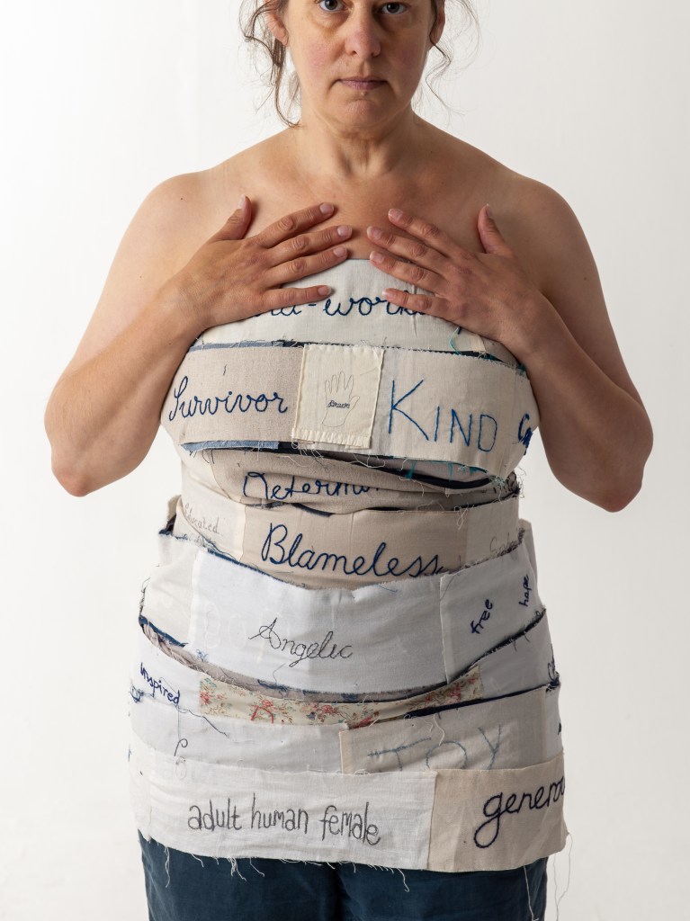 With this project I want to reflect on the words used to describe and label women then and now. The artwork will be made of stitched words, both positive and negative, created by women participants through community workshops and women working on them at home. Being part of a collective project about women’s lives and the perception of women is really powerful. I’d love to hear your voice in this work.