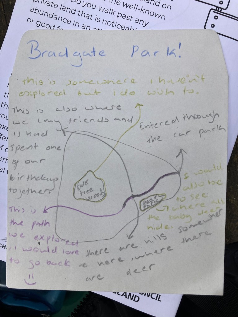 Places and Traces is a project to create an emotional map of (part of) Charnwood Forest, involving walks and wild workshops over the warmer months and indoor activities with crafts, maps and archives in the winter.