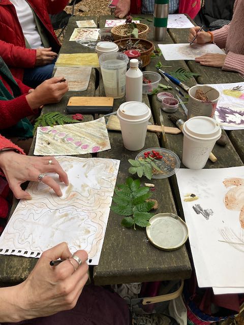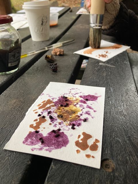 A creative nature session using berries, plants and soil to make maps for our emotional histories map
