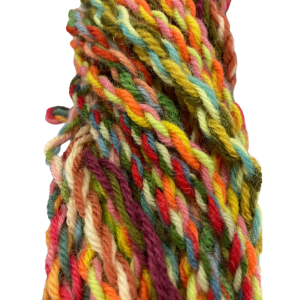 The skein is just starting, but already looking joyously colourful. The participants really appreciated how fun it was to make these colourful cords, the message behind the project and being part of a piece to go in the exhibition.