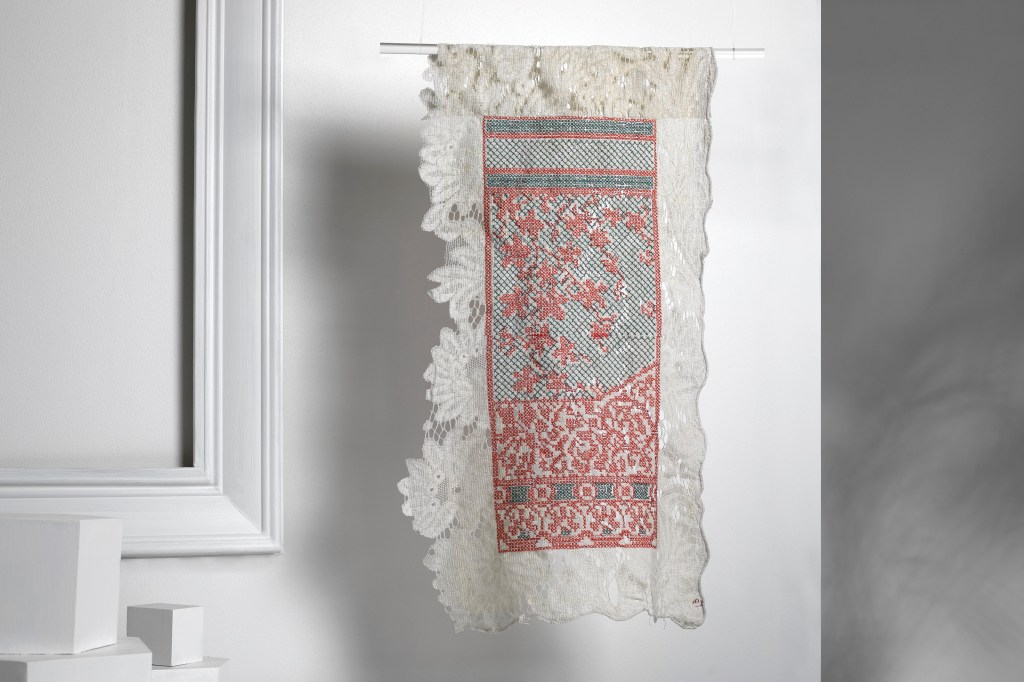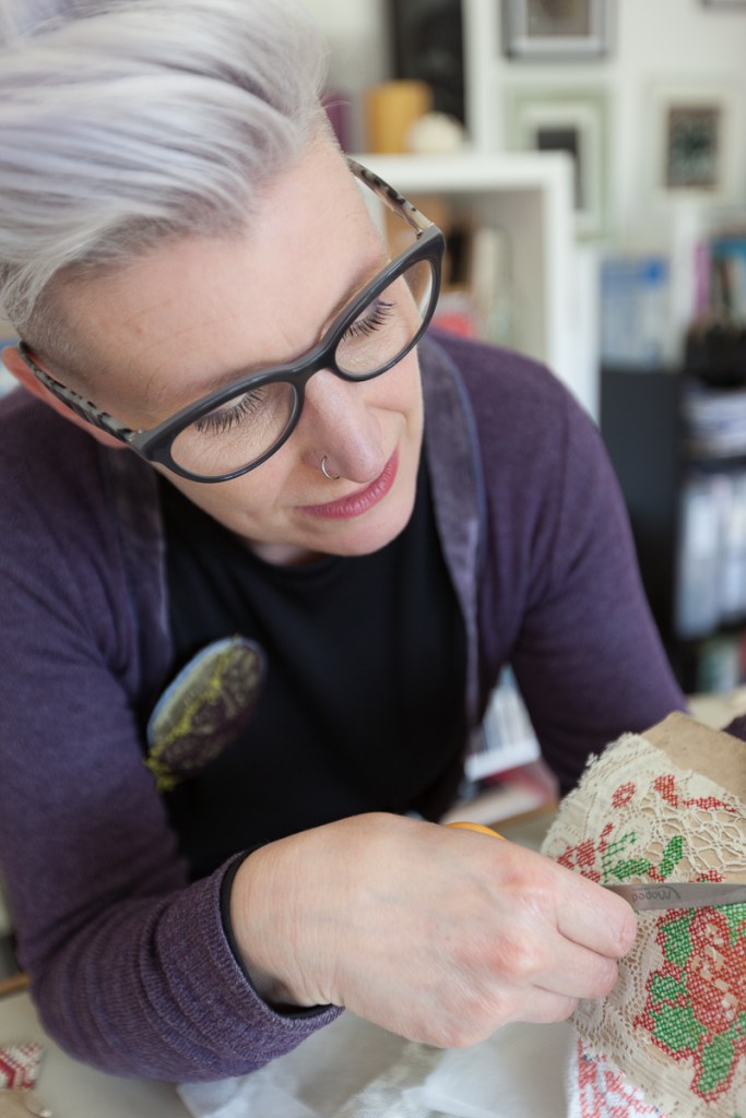 Careful study takes her work beyond nostalgia to highlight technical detail and hidden marks. She highlights the craftwork within the ‘machine-made’ using different embroidery and lace styles; her lace is drawn, digitised, made, finished -by hand and machine.