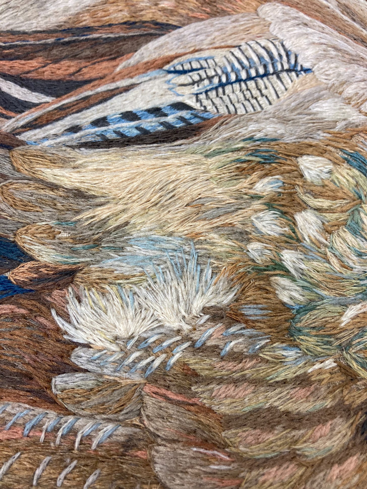 A detail Mary Linwood’s stitched version of a painting by Moses Houghton. Leicester Museums