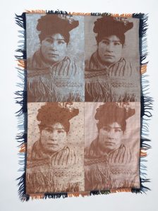 Repeat Offender is a screen-printed textile piece, printed on vintage cloth, created with the support of University of Wolverhampton Textiles and Fashion team. Purchased by Newcastle-under-Lyme Borough Council for the collections of The Brampton Museum, Staffordshire. This piece is part of Criminal Quilts and was purchased for this collection because the woman featured, Agnes Herrity was from Newcastle-under-Lyme. Agnes quickly became one of the stars of the Criminal Quilts project, as she features several times in the prison mugshots.