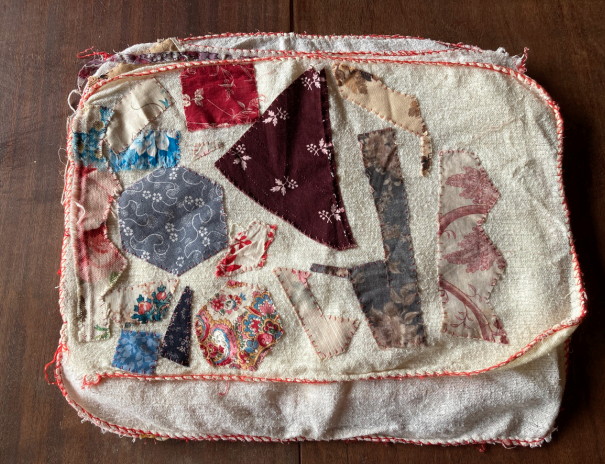 The dusters reminded me of the little plots we have our homes on, fenced in by boundaries and each with its own fragments of garden, of plant life and nature. Each piece is made from tiny snippets of floral fabrics as found in my stash, mostly left from making patchwork. These tiny shapes are like isolated garden beds of plants, hemmed in and surrounded by buildings and concrete in urban areas.