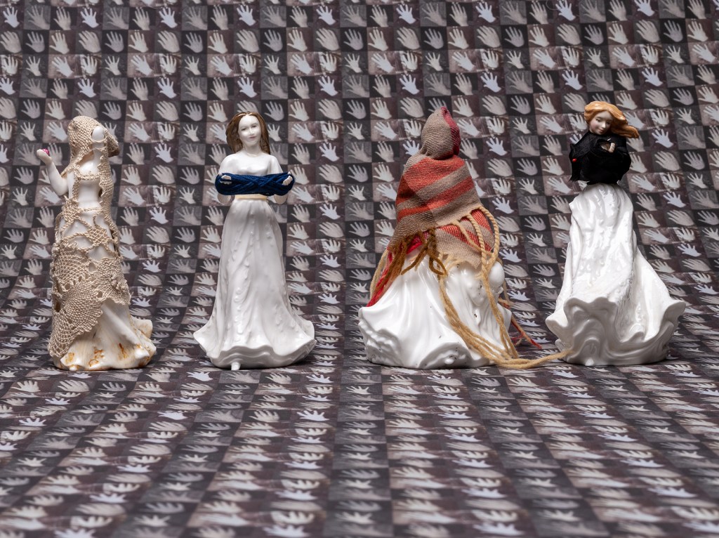 I have collaborated with fine artist Gillian McFarland to create an installation piece reflecting the stories of some of the women in the prison photographs. The work explores the idea of women being labelled and identified by derogatory or demeaning terms. We have contrasted these with images of feminine perfect in the form of Staffordshire ceramic figurines.