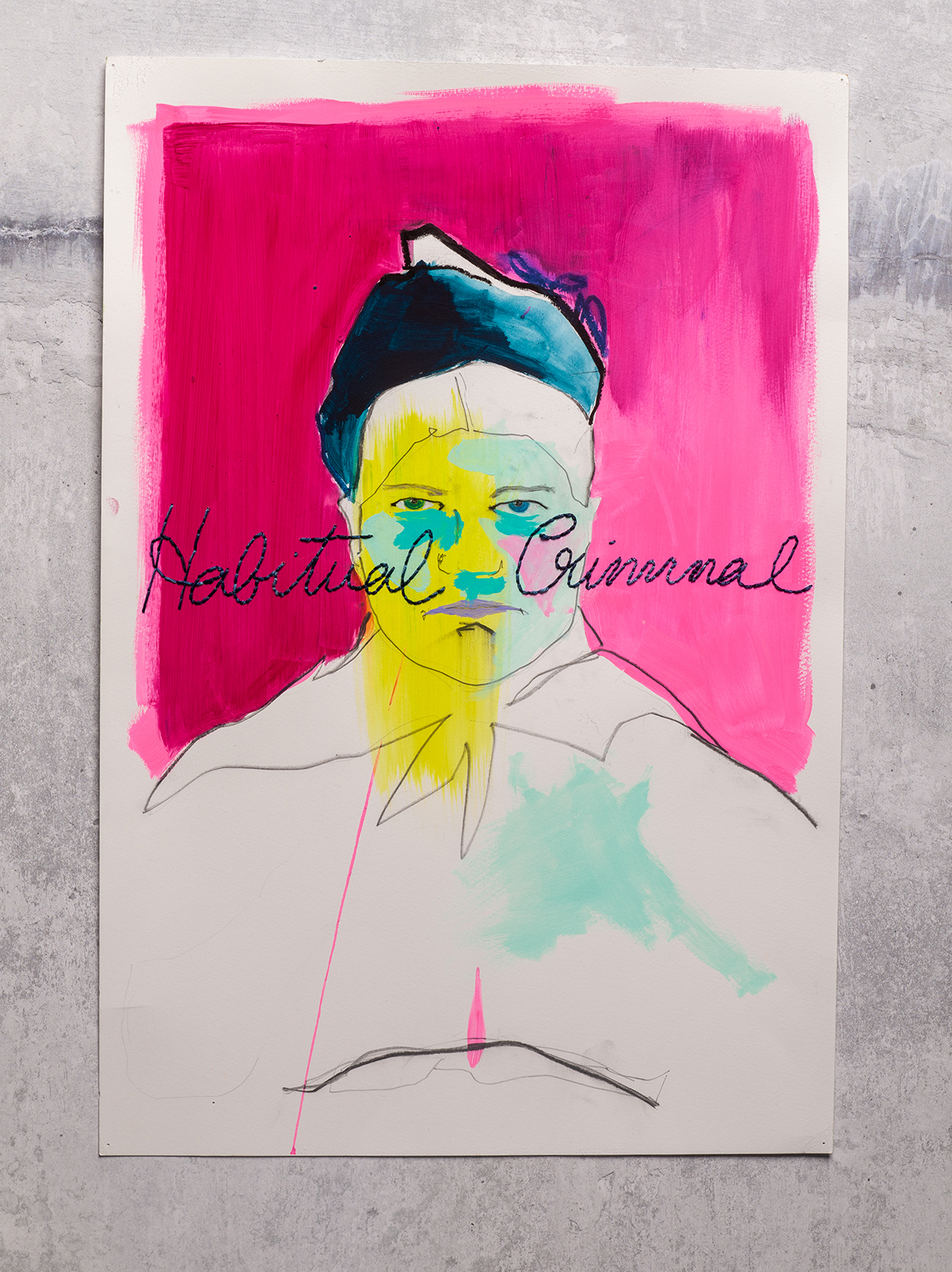 With this third artist collaboration in the 2022 exhibition, I wanted to introduce something very different. I chose to work with contemporary painter Tim Fowler to create portraits from some of the prison mugshots. I often talk about giving colour and personality back to the lives of these women in contrast to the black and white photos and limited official records we have for them. These embellished paintings definitely do that.