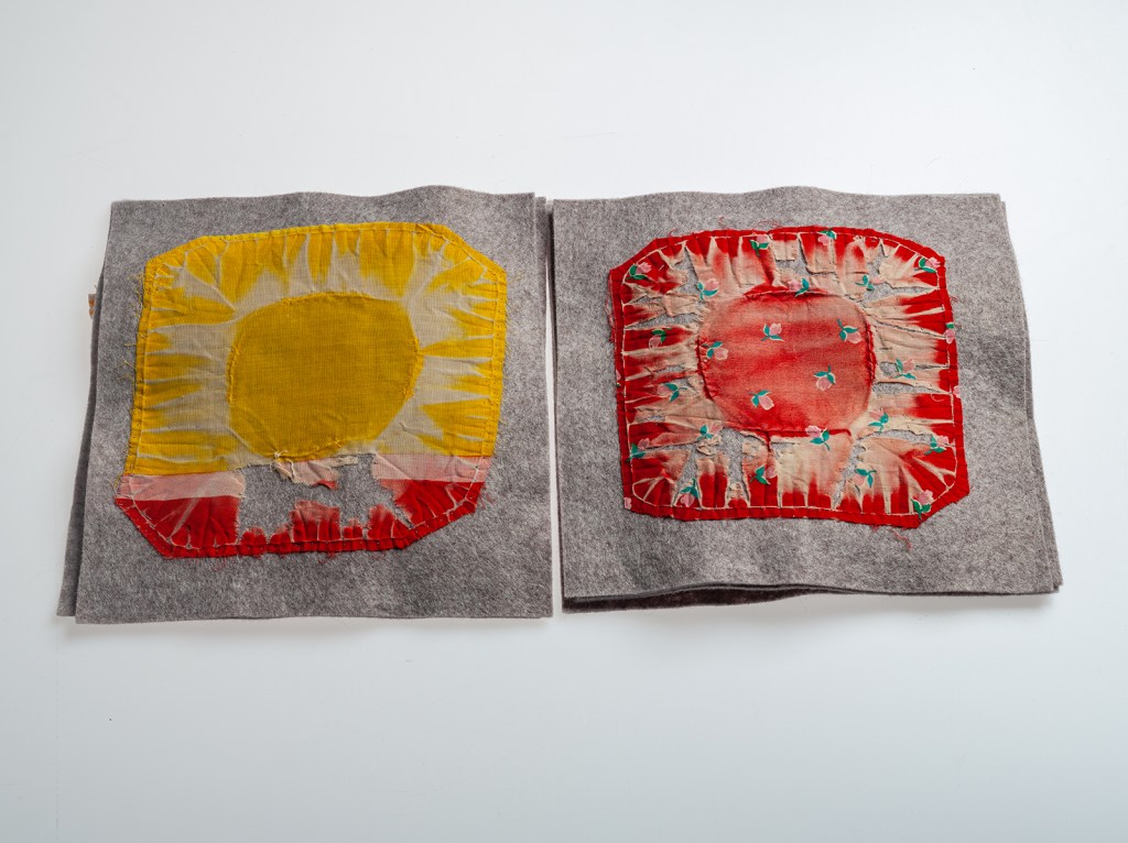 I’m fascinated by how fabric fades particularly when it’s stitched and unpicked. This small fabric book showcases the extraordinary patterns and damage caused by fading on these vintage Suffolk puffs.